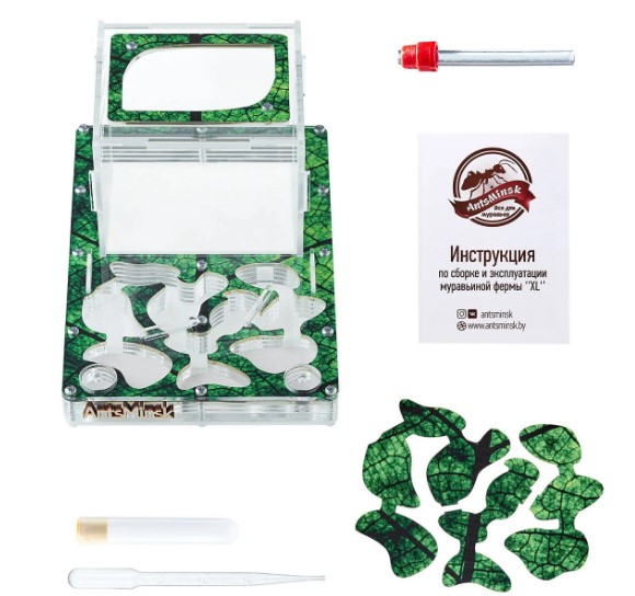 Муравьиная ферма продумана и сделана таким образом что все детали плотно соединяются между собой , для того чтобы не один муравей не смог выбежать , а встроенная вентиляция будет обеспечивать жизненный обмен воздуха , через прозрачное стекло вы сможете наблюдать полный цикл жизни деятельности своих мурашей он маленького яйца до рождения полноценного муравья .