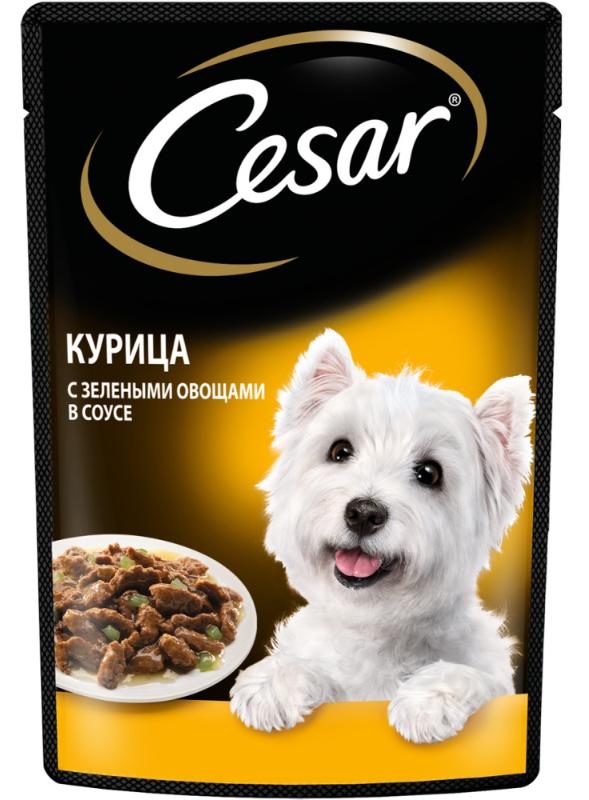 Cesar для взрослых собак (курица с зелеными овощами) - это аппетитные кусочки из курицы с отборными овощами в густом ароматном соусе.