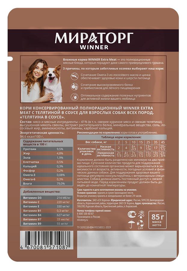 Мираторг Extra Meat влажный корм для взрослых собак всех пород соус (телятина) 85г