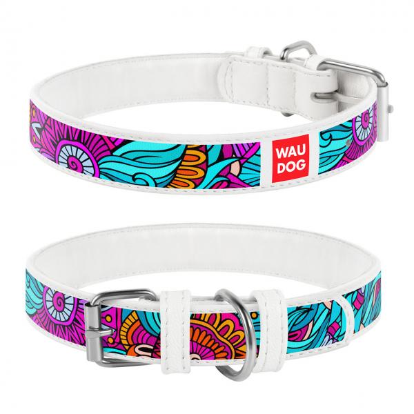 Collar Waudog Ошейник для собак (рисунок витраж, белый)