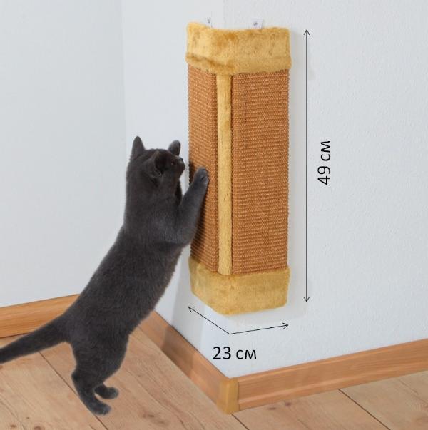Кот - это не только милое домашнее животное, создающее уют в доме, но и целый букет инстинктов, с которыми нет смысла бороться. Коту необходимо точить когти, избавляясь от старой оболочки, оставлять метки, а также тянуть спинку и разминать мышцы. Кот дерет углы, обивку мебели и другие вещи в доме? Решить данную проблему просто - приобретите угловую когтеточку "TRIXIE" с креплением на угол. Она достаточно большая, размер сизалевых поверхностей - 41х11 см., общий размер - 23х49 см.