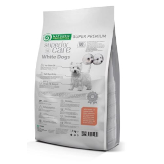 Nature's Protection Superior Care White Dogs Adult Small & Mini Breeds (Лосось) – сухой беззерновой корм для взрослых собак мелких и мини пород с лососем. Это больше, чем просто корм. Это ежедневная оздоровительная система, специально разработанная для маленьких и очень маленьких пород собак со светлой шерстью, склонных к аллергии, от чувствительной кожи и пищеварения до пятен на слезах.