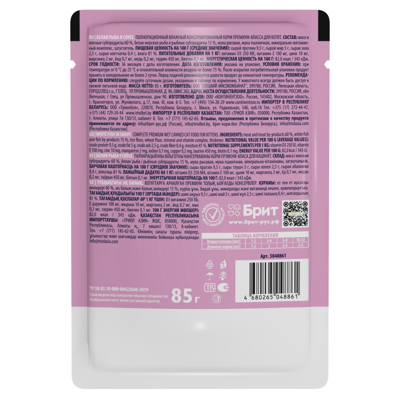 Brit Корм консервированный для котят (белая рыба в соусе), 85г
