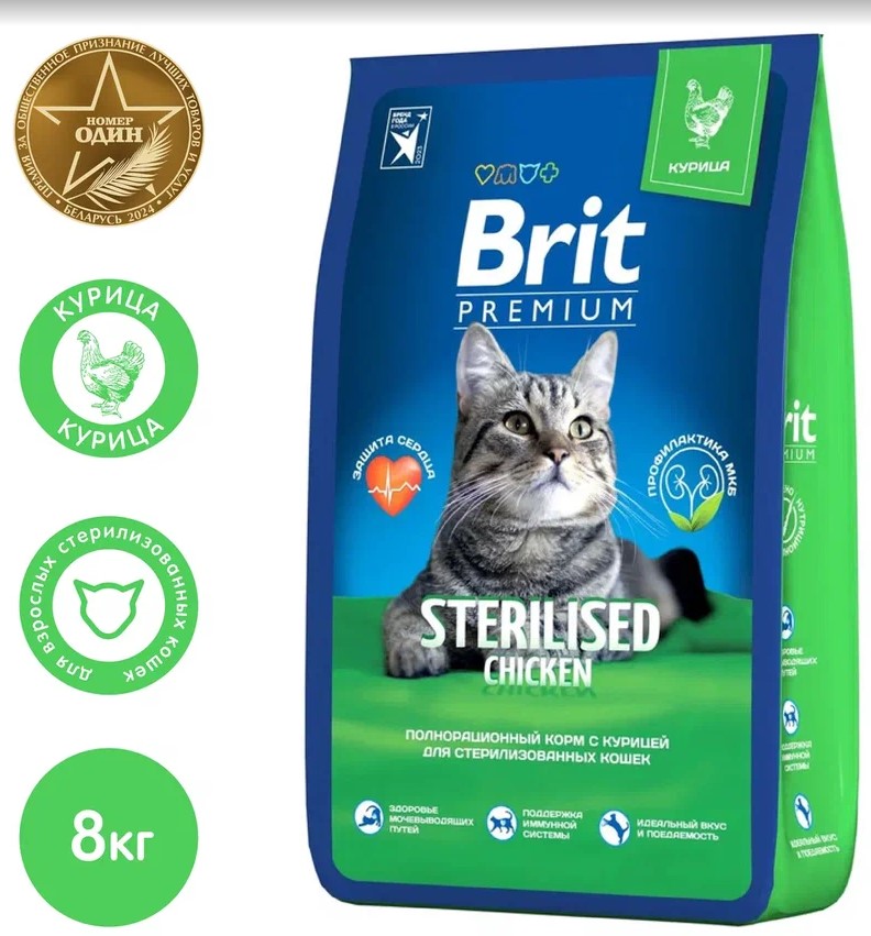 Brit Premium Корм сухой для стерилизованных кошек (курица), 8кг