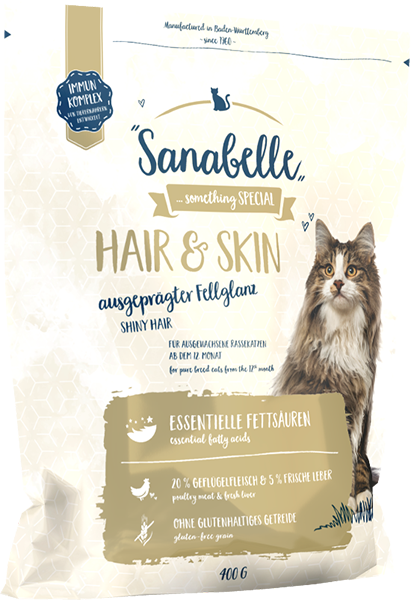 Bosch Sanabelle Hair&Skin - для сбалансированного и здорового питания и красивой блестящей шерсти взрослых кошек всех пород. Корм произведён на основе свежего мяса домашней птицы для взрослых кошек всех пород.