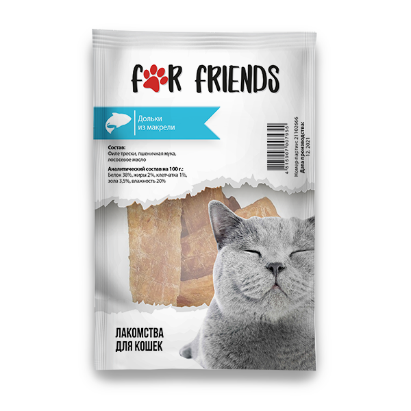 For Friends Лакомство для кошек (дольки из макрели), 50г