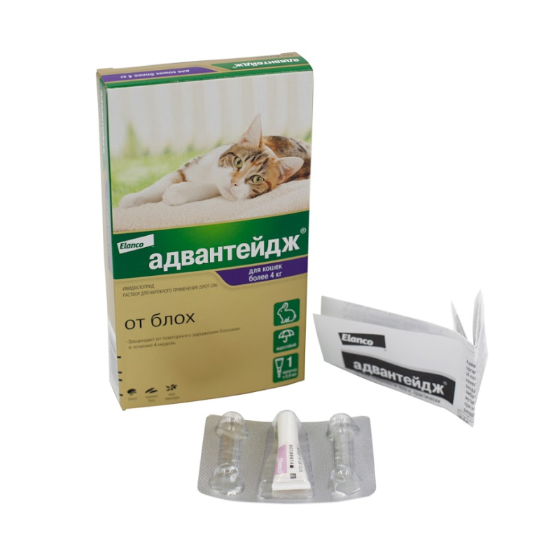 Описание: Адвантейдж помогает защитить кошек от блох, их укусов, снижая риск передачи переносимых ими заболеваний. Капли от блох Адвантейдж® содержат действующее вещество имидаклоприд, которое начинает действовать на блох уже в течение 3-5 минут после контакта.