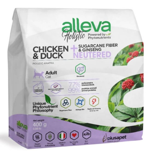 Alleva Holistic — беззерновой полнорационный сбалансированный корм для кастрированных котов и стерилизованных кошек, обеспечивающий полный комплекс необходимых веществ для здоровья и развития вашего питомца.