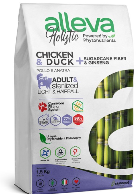 Alleva Holistic Корм для кастрированных котов и стерилизованных кошек, для выведения шерсти с курицей и уткой 1,5 кг