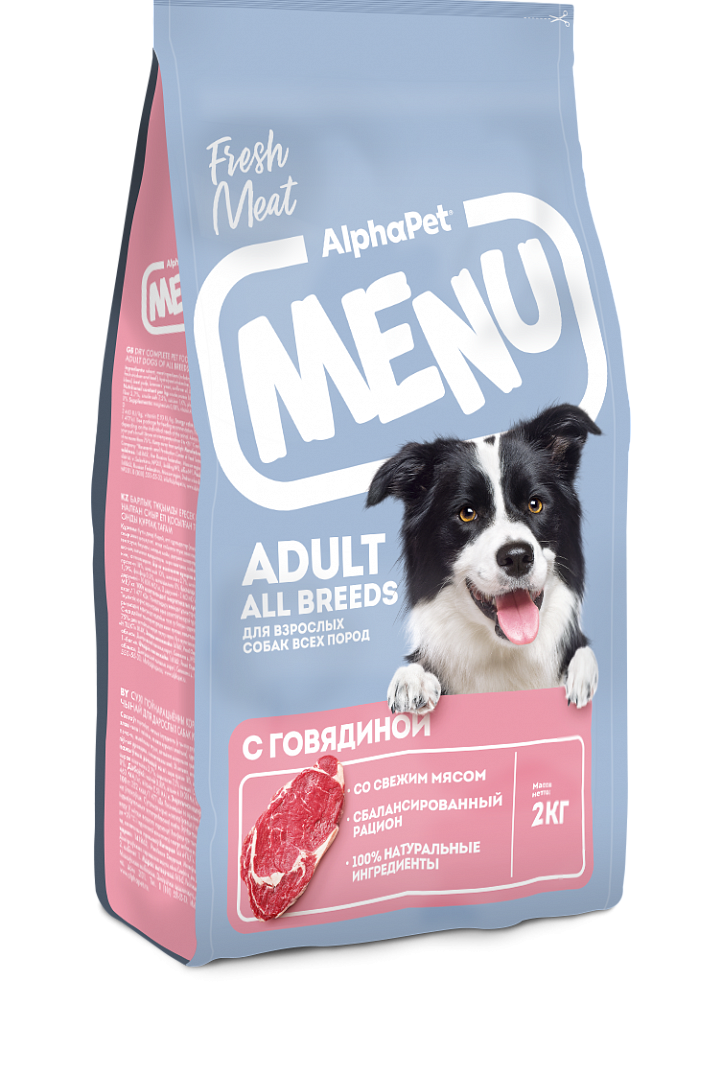 AlphaPet Menu сухой корм для взрослых собак всех пород, с говядиной,2кг
