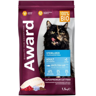 Award Cat Sterilized для взрослых стерилизованных кошек (Белая рыба) 1,5кг