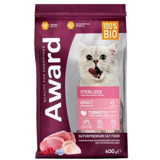 Award Cat Sterilized для взрослых стерилизованных кошек (Индейка, курица)