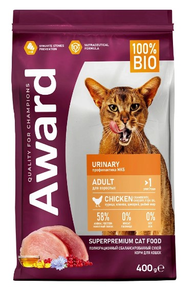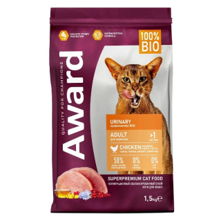 Award Cat Urinary (Курица) — сухой корм для взрослых кошек для профилактики мочекаменной болезни с курицей с добавлением клюквы, цикория и рыбьего жира.