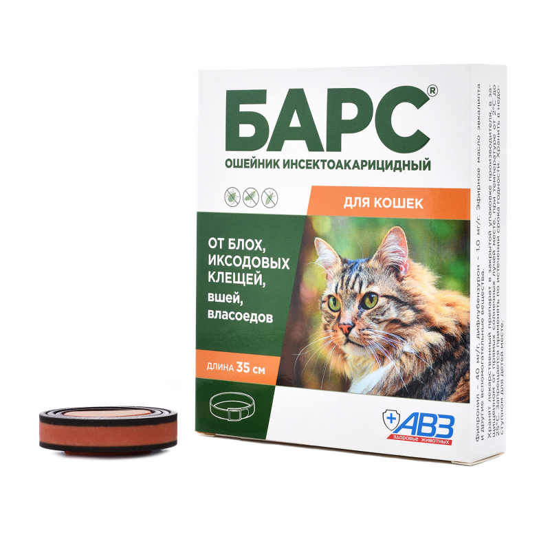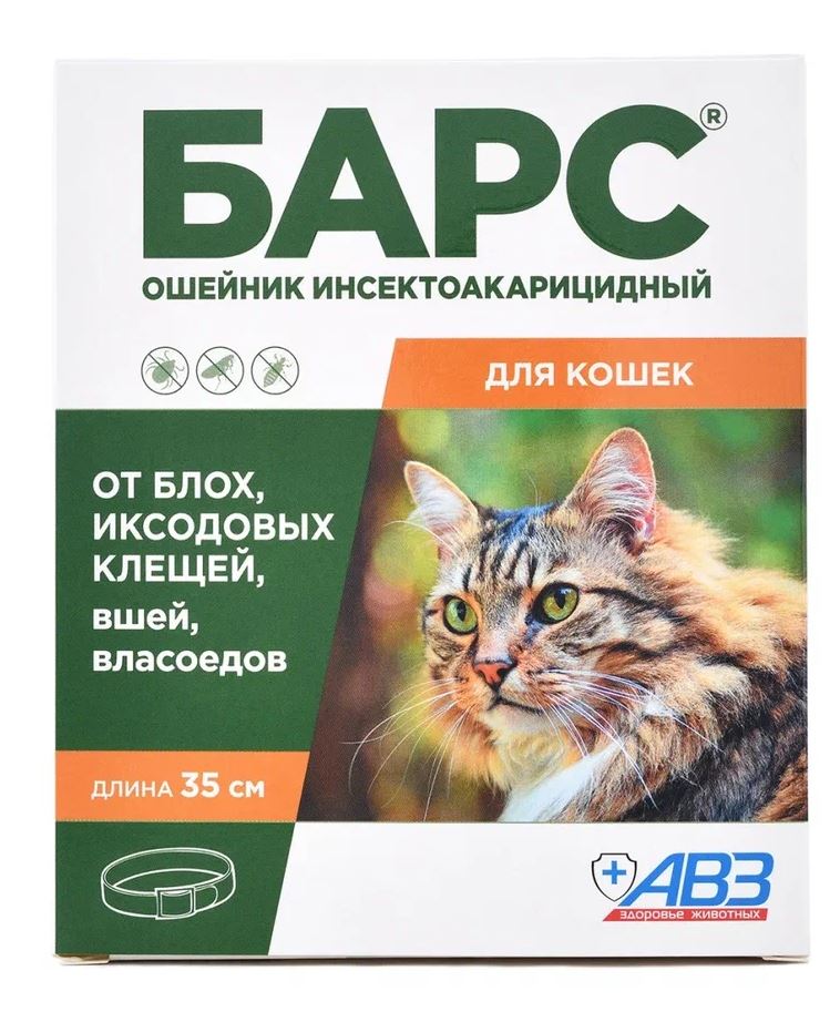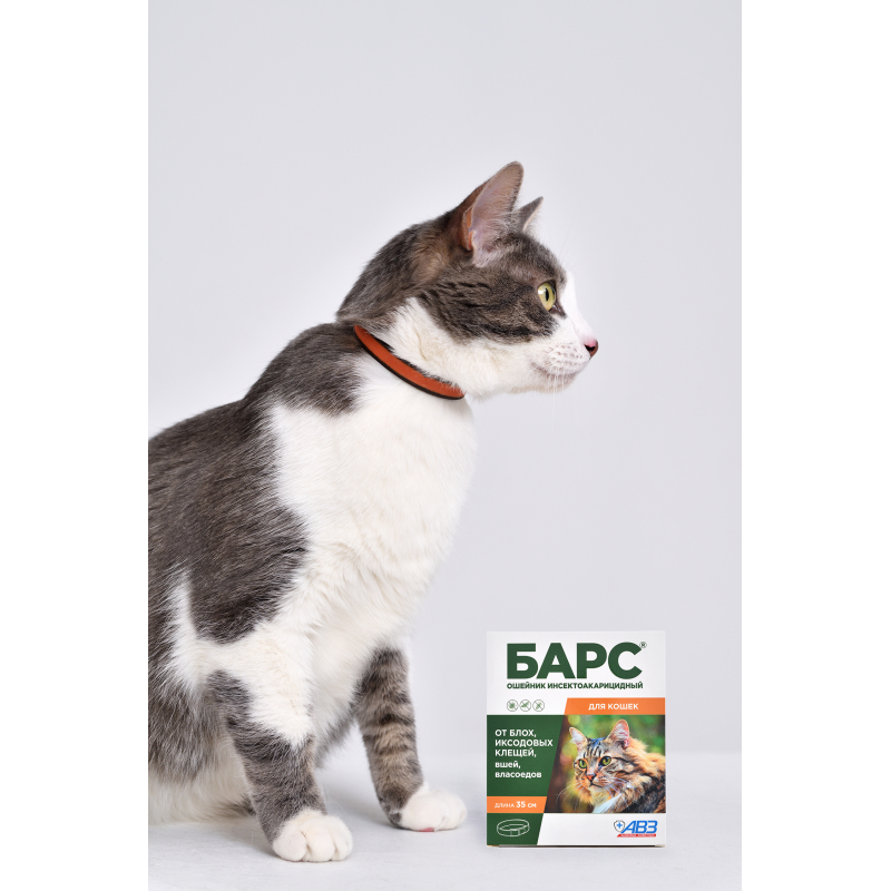 БАРС ошейник инсектоакарицидный для кошек, защита от блох на 5 мес, от клещей на 4 мес.