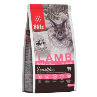 BLITZ Sensitive Adult Cat (Ягненок) — это полнорационный сухой корм суперпремиум класса для взрослых кошек создан на основе мяса ягненка и отлично подойдет животным с чувствительным пищеварением и склонностью к пищевым аллергиям.