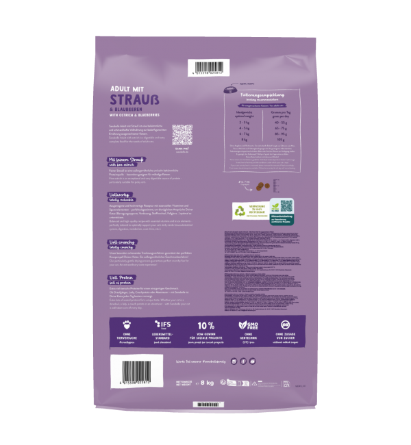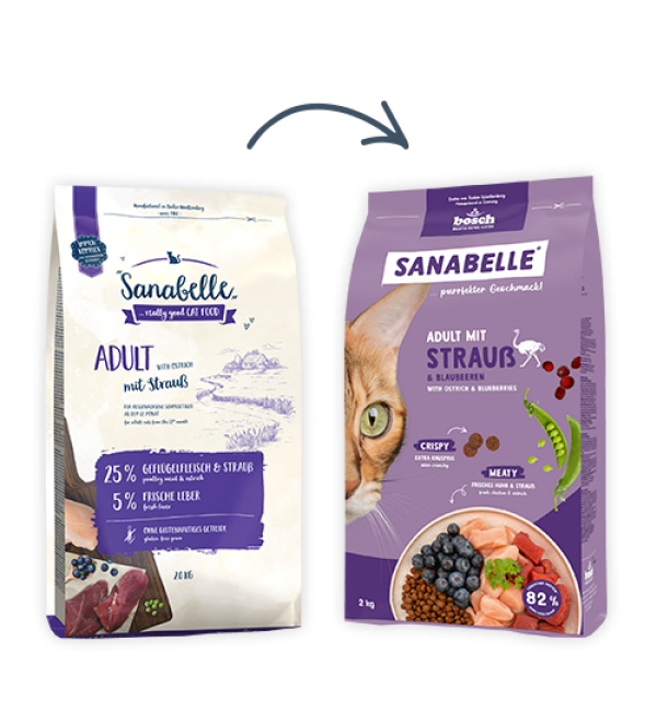 Корм Sanabelle Adult Ostrich & Blueberries — идеальный выбор для кошек, которые любят что-то особенное.