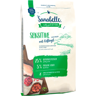 Bosch Sanabelle Sensitive with Poultry (птица) - сухой корм для взрослых кошек с чувствительным пищеварением, супер премиум класса. Корм произведён на основе свежего мяса домашней птицы для взрослых кошек всех пород с чувствительным пищеварением.