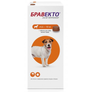 Bravecto 4,5-10 кг Жевательные таблетки для собак (от клещей и блох), 1таб срок до 2027