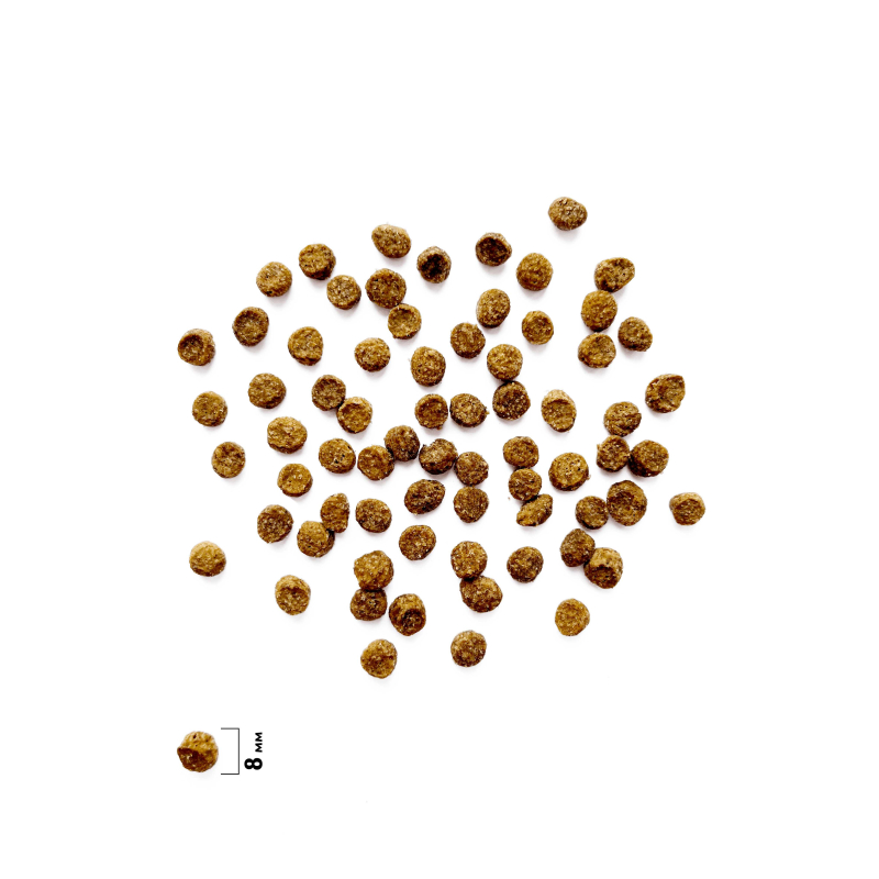 мясо индейки 46 % (дегидрированное мясо индейки 26,4 %, свежее мясо и субпродукты индейки 19,6 %), животный жир 16 % (источник Омега-6 жирных кислот), рис цельнозерновой, ячмень цельнозерновой, клетчатка свекловичная, растительный протеин (в том числе картофельный и гороховый), гидролизованный животный белок 3,5 %, витаминно-минеральный комплекс, пивные дрожжи (источник маннанолигосахаридов), сушеная морковь, сушеное яблоко (источник растворимых пребиотических волокон), льняное семя, холин-хлорид, таурин, DL-метионин, коллаген (очищенный, легкоусвояемый), новозеландская мидия (источник хондропротекторов), экстракт цветков календулы лекарственной (источник каротина, органических кислот и витаминов, профилактирующих заболевания ЖКТ и стимулирующих регенерацию кожи и шерсти), корень цикория (источник фруктоолигосахаридов), хондроитин, глюкозамин, антиоксиданты (витамин Е, экстракт розмарина, натуральные токоферолы), юкка Шидигера.