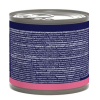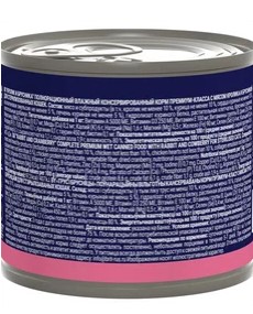 Состав: мясо и субпродукты (в т.ч. кролик не менее 10 %, курица не менее 10 %, сердца куриные не менее 10 %, коллагеновая эмульсия не менее 5 %, печень куриная не менее 5 %), гидролизат куриного белка, клетчатка, брусника сушеная, витамины группы B, РР, K, Na, Mg, Fe, Cu, I, Se, Са и Р (1 / 0,8), витамины (питательные добавки на 100 г): А 500 МЕ, D3 50 ME, Е 5 МЕ.