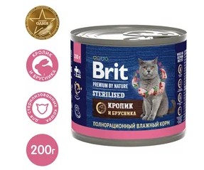 Brit Консерва для стерилизованных кошек (кролик, брусника), 200г
