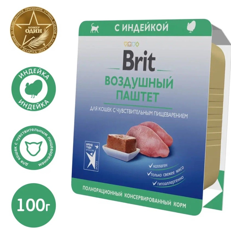 Brit Premium Sensitive Воздушный паштет для кошек с чувствительным пищеварением с индейкой, 100г
