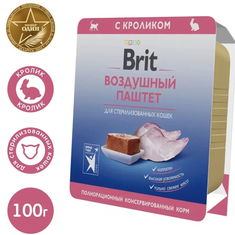 Brit Premium Sterilised Воздушный паштет для стерилизованых кошек с кроликом, 100г