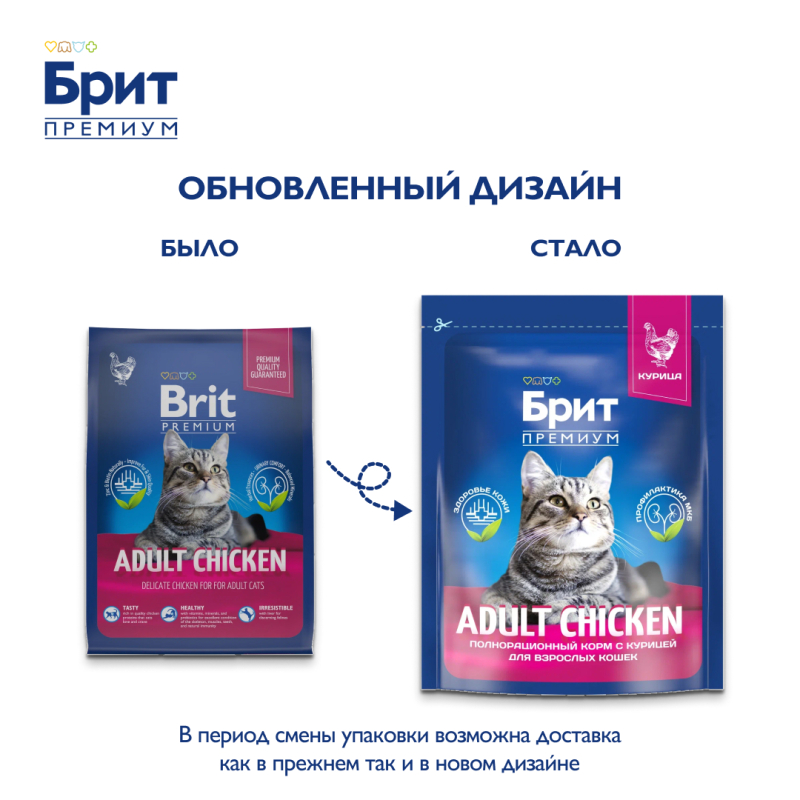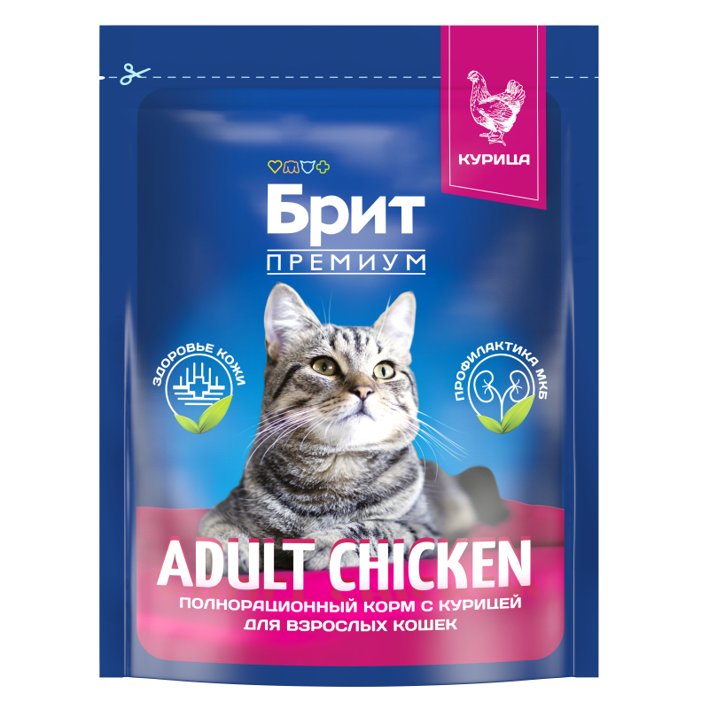 Brit Premium Cat Adult (Курица) — полнорационный сухой корм премиум-класса с курицей для взрослых кошек, с мясом курицы предназначен для взрослых кошек всех пород. Сбалансированный состав содержит все витамины и минералы, необходимые для ежедневного здорового питания вашего питомца.