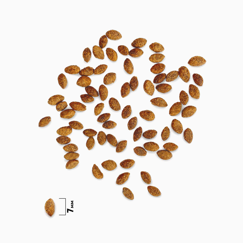 Дегидрированное мясо 37% (лосось, курица), кукуруза, глютен кукурузный, рис, жир куриный, свекольная пульпа, гидролизованная и дегидратированная печень 3%, дрожжи (источник маннанолигосахаридов), витаминно-минеральный комплекс, таурин, топинамбур (источник инулина - фруктоолигосахаридов), клюква, DL-Метионин, антиокислитель, экстракт юкки Шидигера.