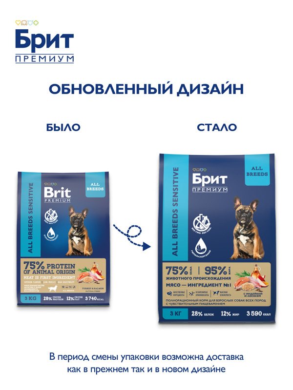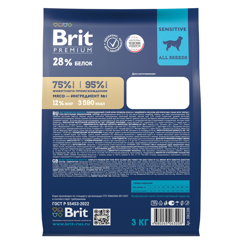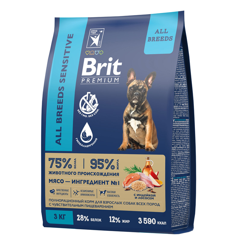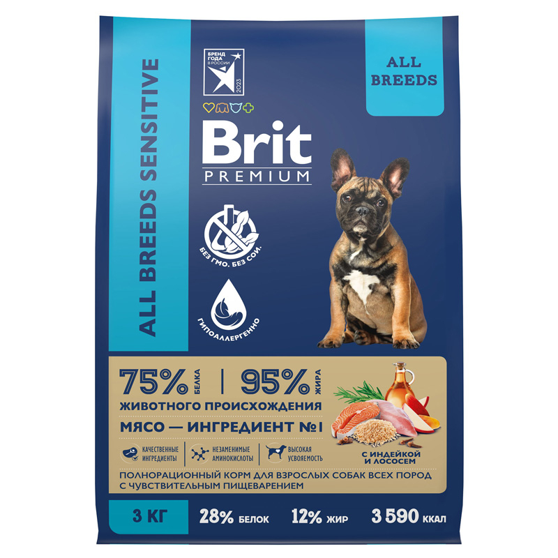 Brit Premium Dog Sensitive Adult All Breeds – полнорационный сухой корм премиум-класса с индейкой и лососем для взрослых собак всех пород с чувствительным пищеварением