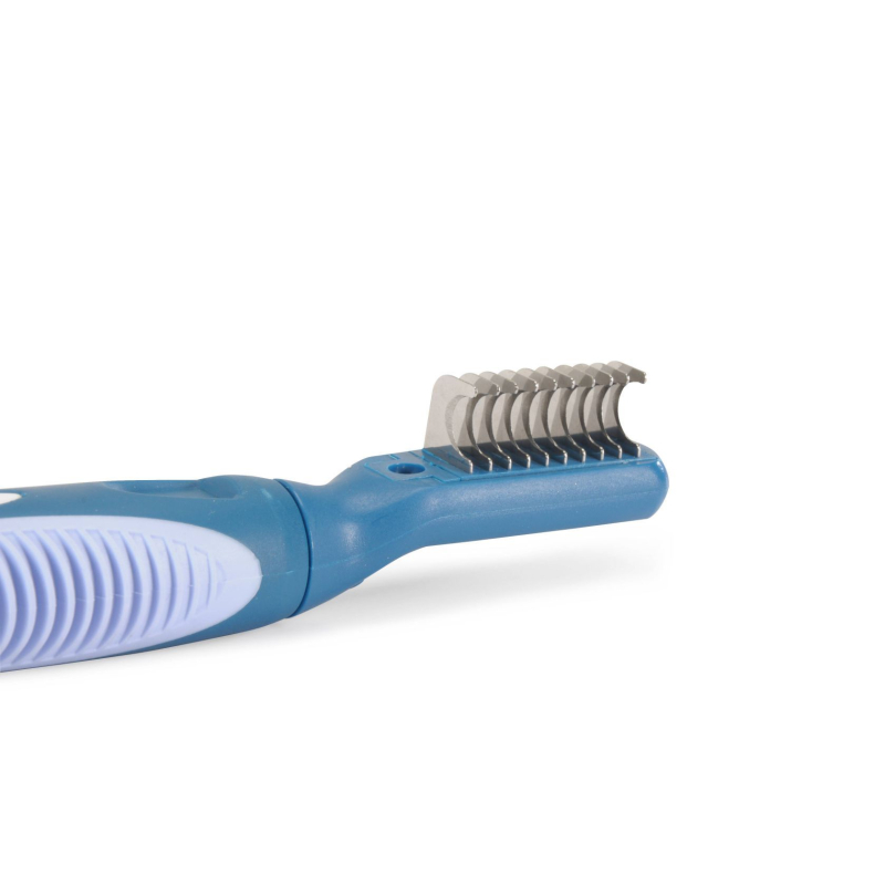 Колтунорез от CAMON с 10 короткими изогнутыми лезвиями. Идеально подходит для устранения колтунов, истончения шерсти, а также облегчения расчесывания. Лезвия специально заточены и изогнуты, что обеспечивает легкое удаление колтунов и минимизирует срезание шерсти. Для верхнего слоя шерсти.