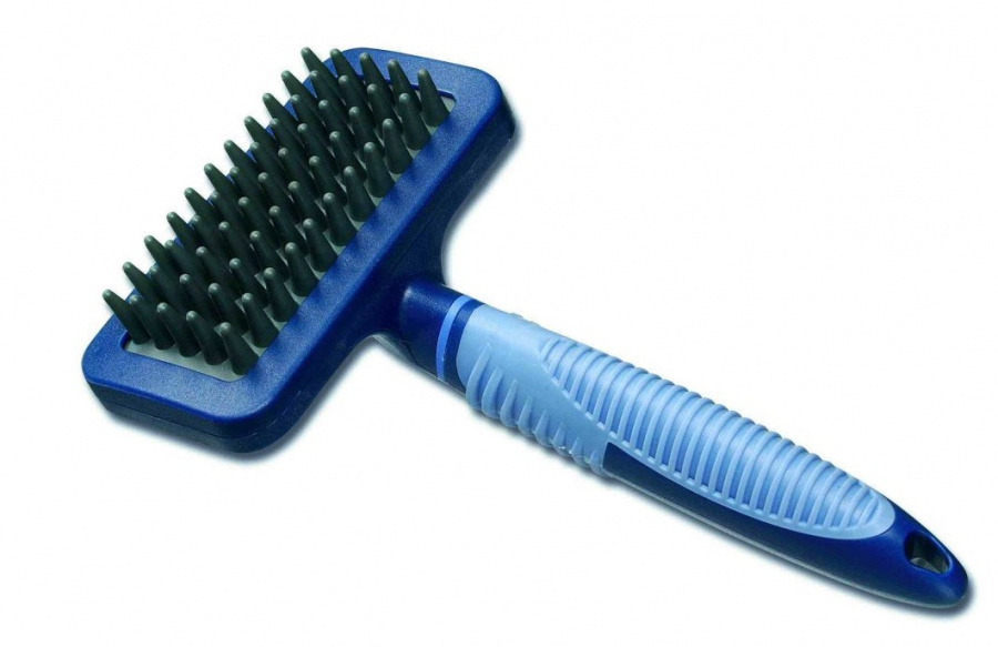 Резиновая щетка-пуходерка идеально подходит для удаления линяющих волос и для массажа кожи короткошерстных, бритых или грубошерстных животных.