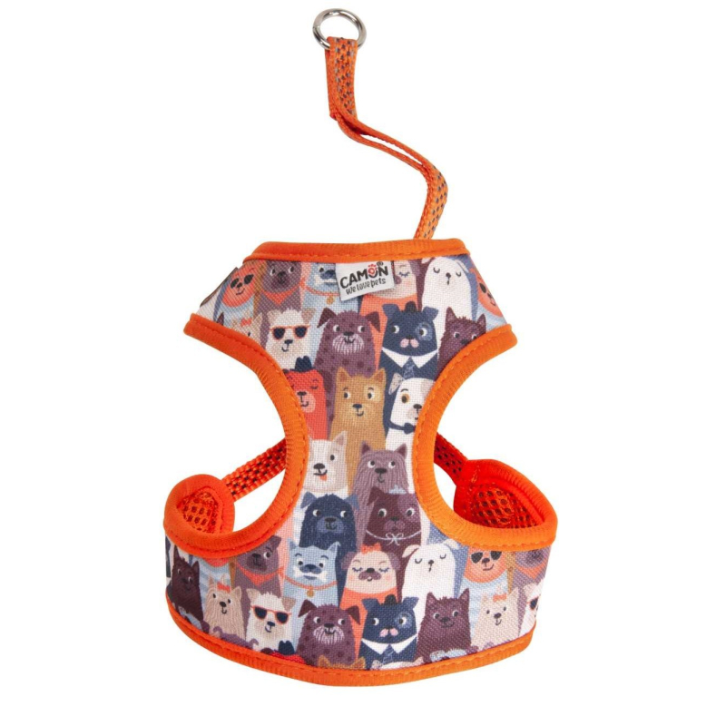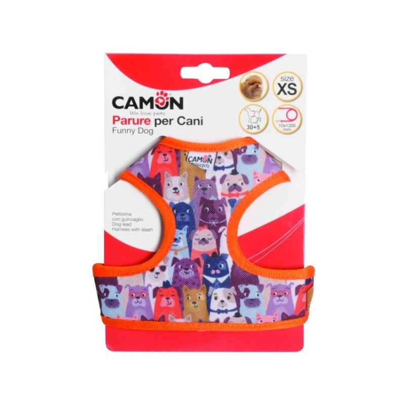 CAMON Шлея с принтом собачек и поводком - это прочная шлея для собак. Ремень обхвата груди регулируется, что позволяет добиться идеального прилегания.