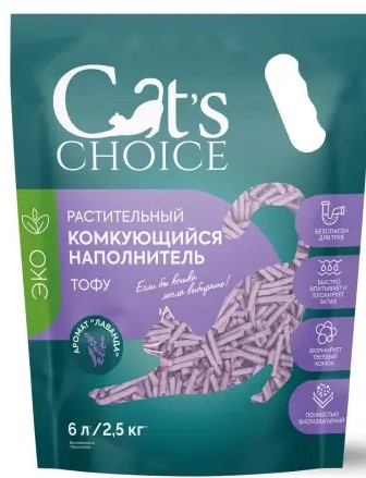 Натуральный растительный наполнитель Cat's Choice из спрессованных соевых волокон с ароматом лаванды.