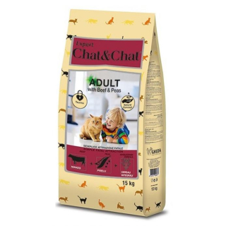 Chat&Chat Expert Adult Cat - полнорационный сухой корм для взрослых кошек со вкусом говядины и гороха.