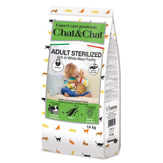 Chat&Chat Expert Adult Sterilized Cat (Птица) — полнорационный сухой корм для взрослых стерилизованных кошек с белым мясом птицы.