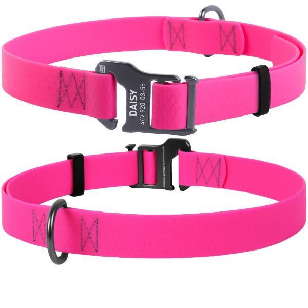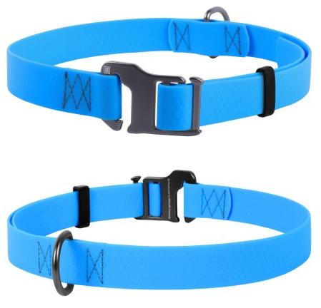 Водостойкий, надежная фурнитура. Усиленный армирующий слой предотвращает деформацию ошейника, благодаря чему он служит дольше