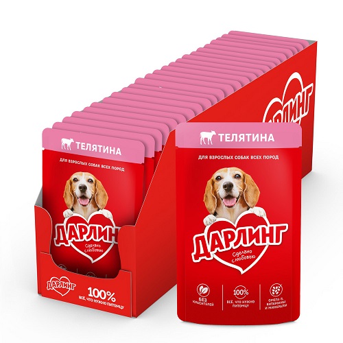 Дарлинг Консервы для собак (телятина в подливе) — это сбалансированное питание, в котором содержится на 100% всё, что нужно собаке каждый день. Он сделан с любовью из качественных ингредиентов, а также содержит Омега-3 жирные кислоты, витамины и минералы, необходимые Вашей собаке, чтобы быть здоровой, активной и дарить радость Вашей семье.