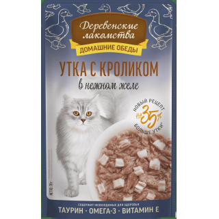 Деревенские Лакомства.Домашние обеды влажный корм для кошек желе (утка, кролик) 70гр