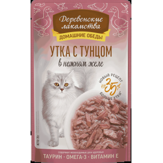 Деревенские Лакомства Домашние обеды влажный корм для кошек желе (утка, тунец) 70гр