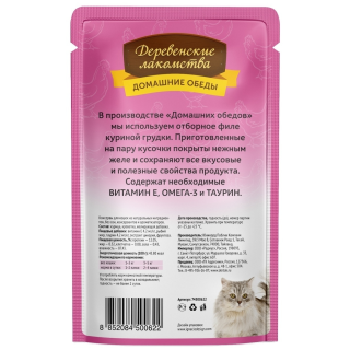 "Деревенские лакомства" Курица с креветкой в нежном желе - это консервированный корм для взрослых кошек.