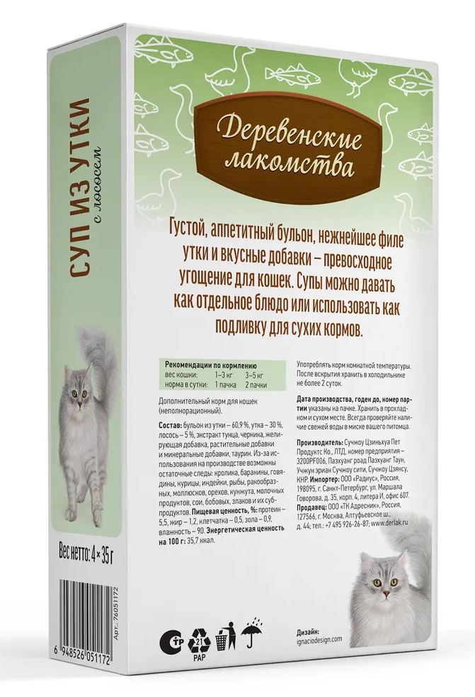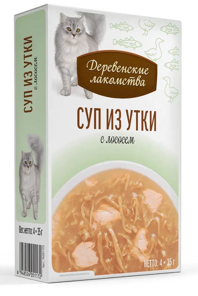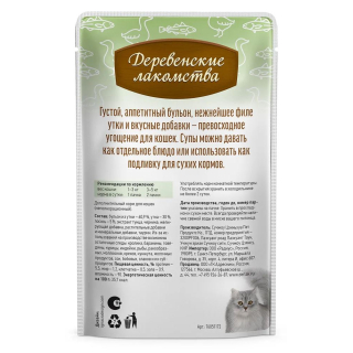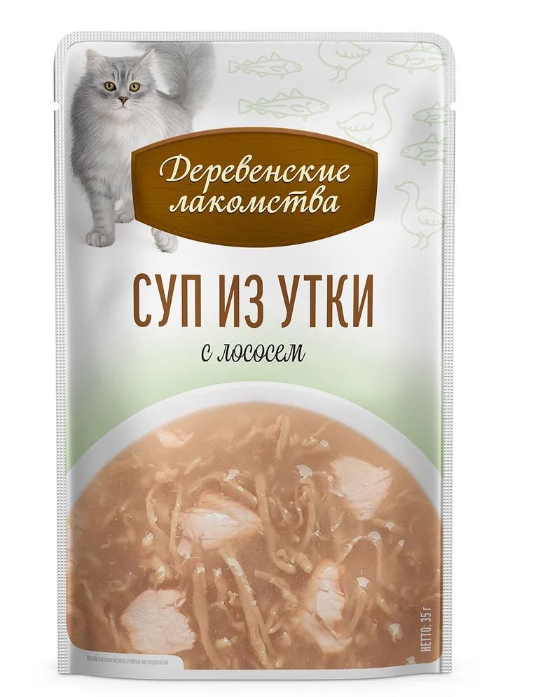 Деревенские лакомства Суп из утки с лососем — натуральное лакомство для кошек в виде супа.
