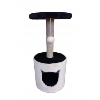 Общая высота 65 cм. Домик и полка из ДСП с плюшевым покрытием, столбик обкрученный натуральным джутом. Разборный, с мячиком на резинке.