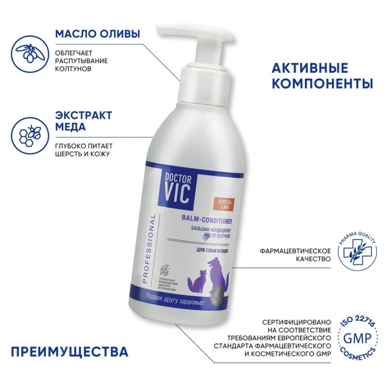 Doctor VIC Бальзам-кондиционер «Doctor VIC» от колтунов для собак и кошек, 200