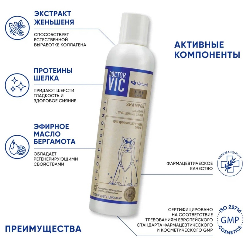 Doctor VIC Шампунь для длинношерстных собак с протеинами шелка, 250 мл
