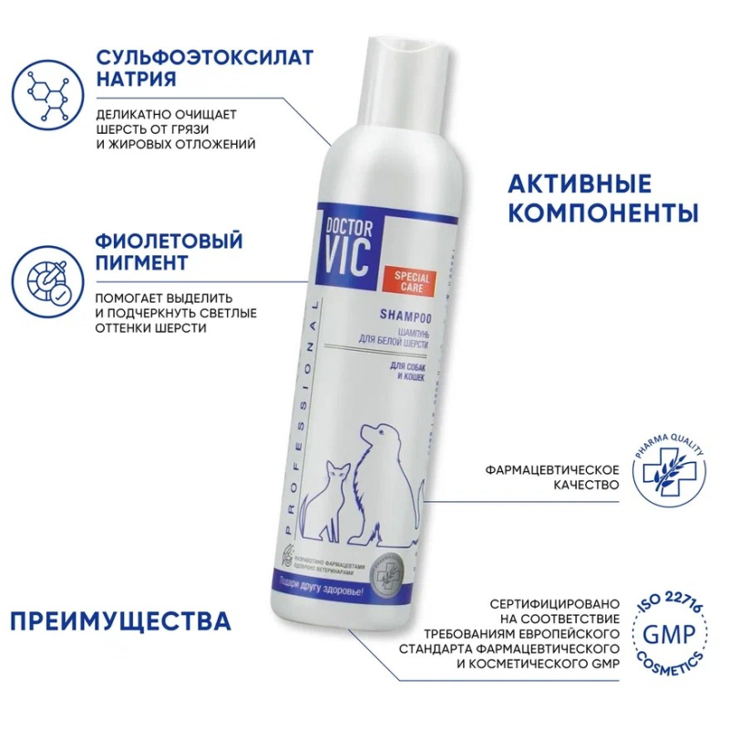 Doctor VIC Шампунь для кошек и собак с белой шерстью, 250 мл