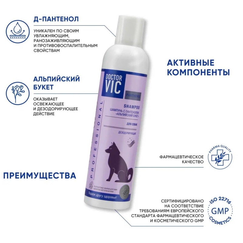 Doctor VIC Шампунь для собак "Альпийский букет" с пантенолом, 250 мл