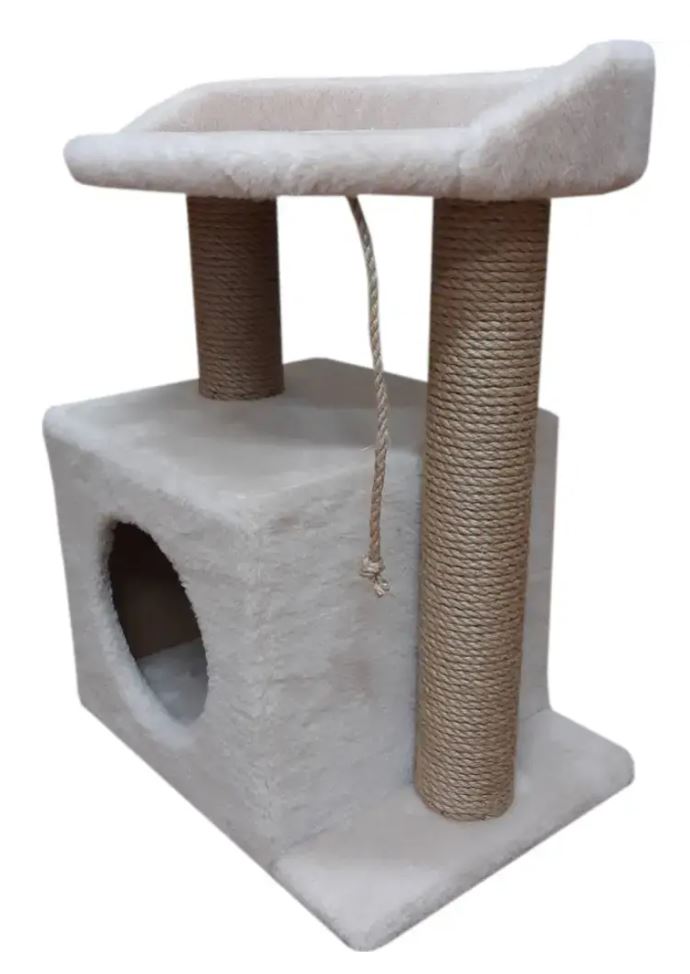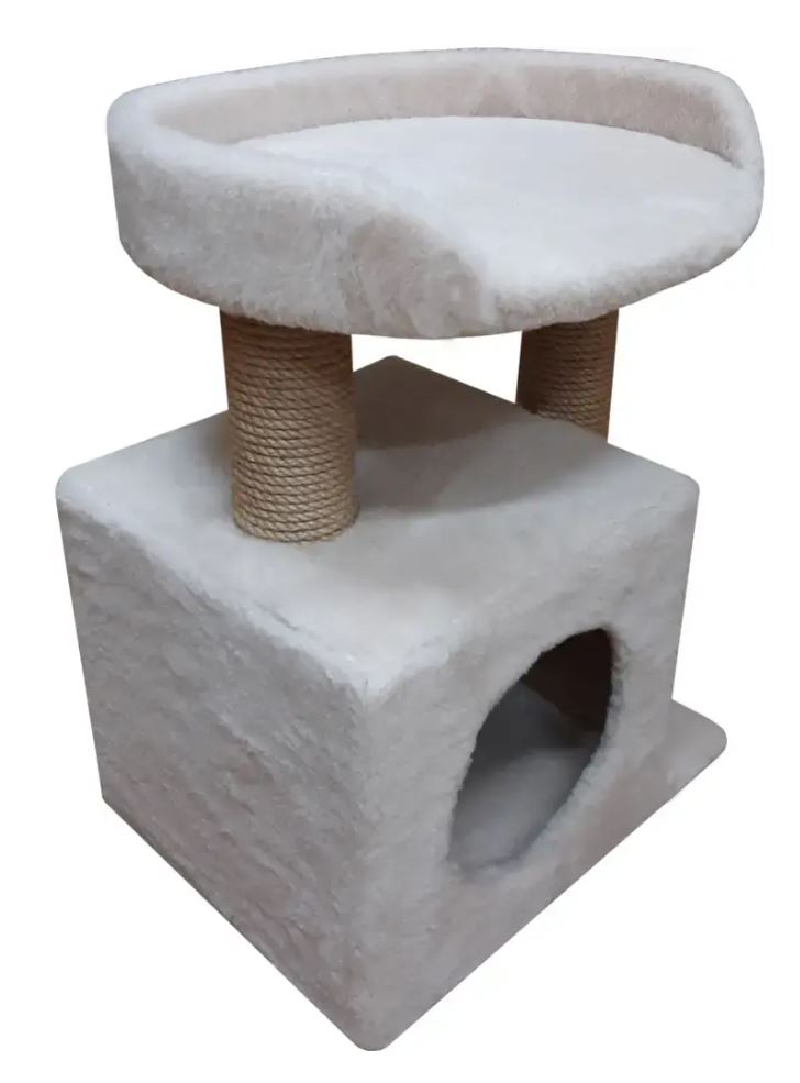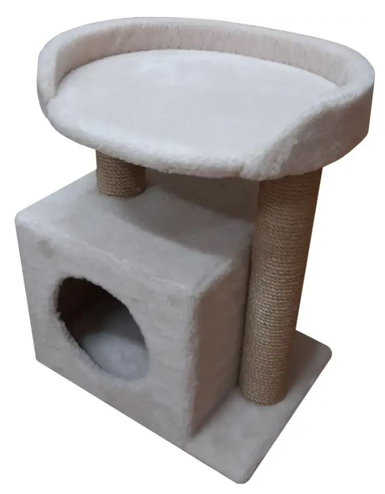 Игровой комплекс для кошек BAST Домик с овальной полкой бежевый — удобный и практичный комплекс, который станет любимым местом для отдыха питомца. Домик обит плюшем как снаружи, так и внутри для комфорта питомца. Ваш питомец сможет поточить когти о когтеточку из джута, а также забраться повыше на верхнюю полку-лежанку для отдыха. Игровой комплекс относится к классу "Стандарт".