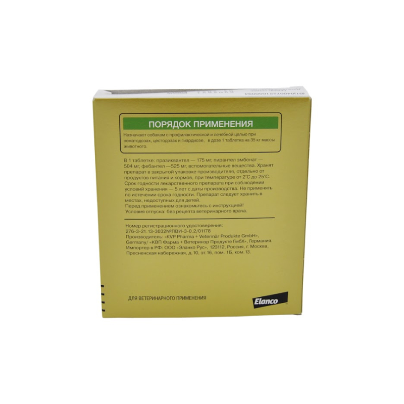 Состав: фебантел, пирантела эмбонат и празиквантел.