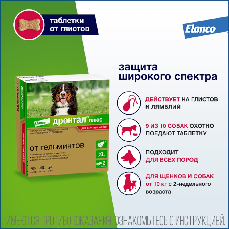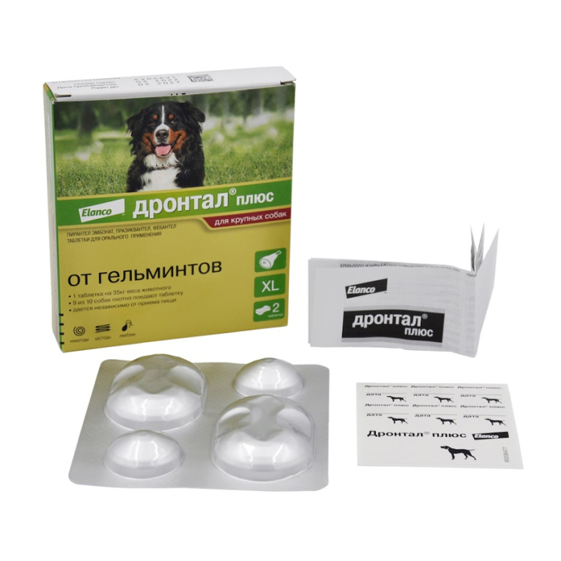Дронтал® плюс, таблетки от глистов и простейших для собак, – препарат от компании Elanco, помогающий избавить вашего питомца от самых распространенных внутренних паразитов – круглых и ленточных гельминтов, а также от простейших – лямблий.